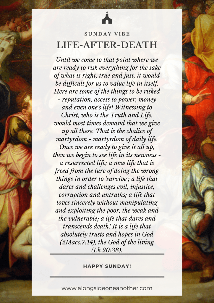 Life after death…yeah, the real taste of life after we had conquered the fear of death; that is, life after we had conquered the fear of losing everything – our property, our reputation, our place at the table of power, our spot at the center, and even our lives.