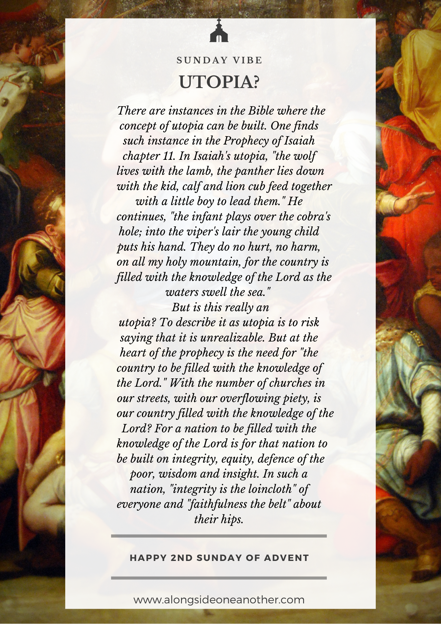 From Nigeria’s chaotic democratic space, to Cameroon’s messiness, to America’s Trumpian era, to Hong Kong ceaseless cry for true democracy, to the abuse scandals in the church, we are all naked. But more painful is the fact that there are hardly signs of shame, of hiding, of being afraid like Adam. It is a sign that our nations are lacking in the knowledge of the Lord. The result is that the hope promised by Isaiah’s utopia will hardly come by.