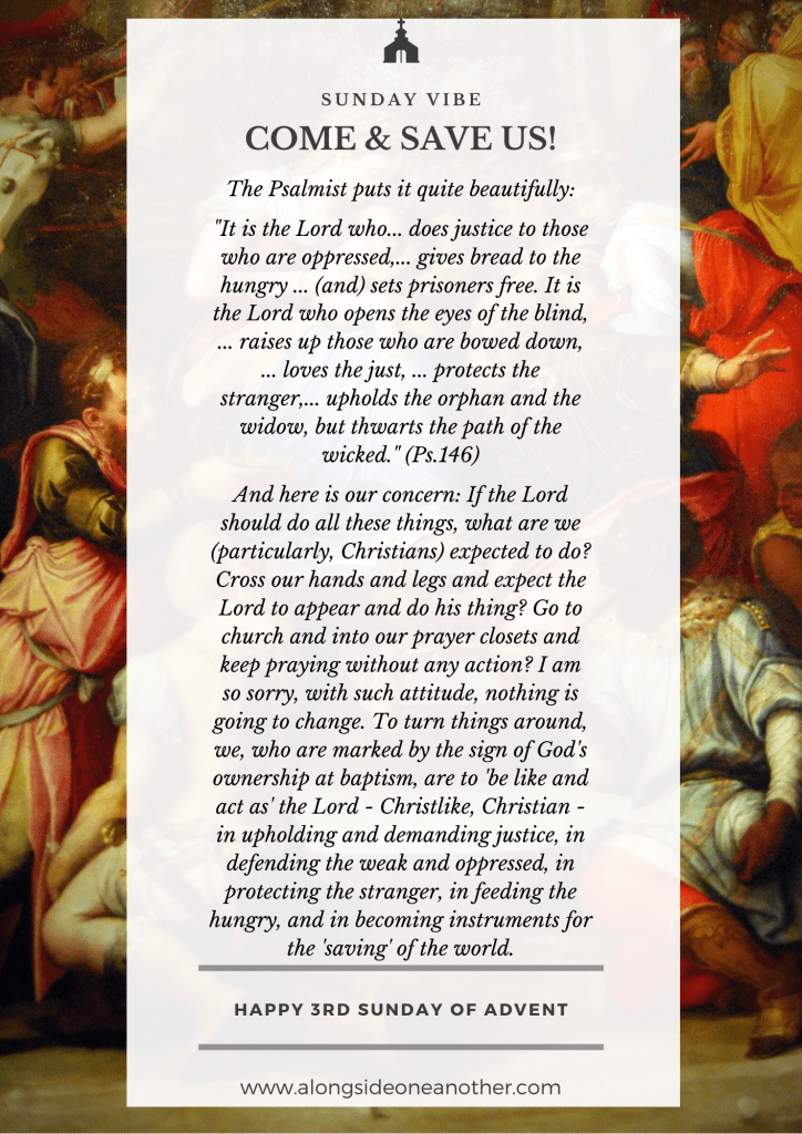 It is therefore disheartening to see Christians at the forefront of dehumanizing others. It is a shame to see Christians promoting injustice in the world, or even becoming indifferent to the many shades and forms of injustice and poverty around them. It is sad to see Christians reject strangers on an account of their different identity, and allow the weak to be oppressed. Yet, on Sundays, the pews are filled up, prayers rise up and songs of praise and ministration break forth.