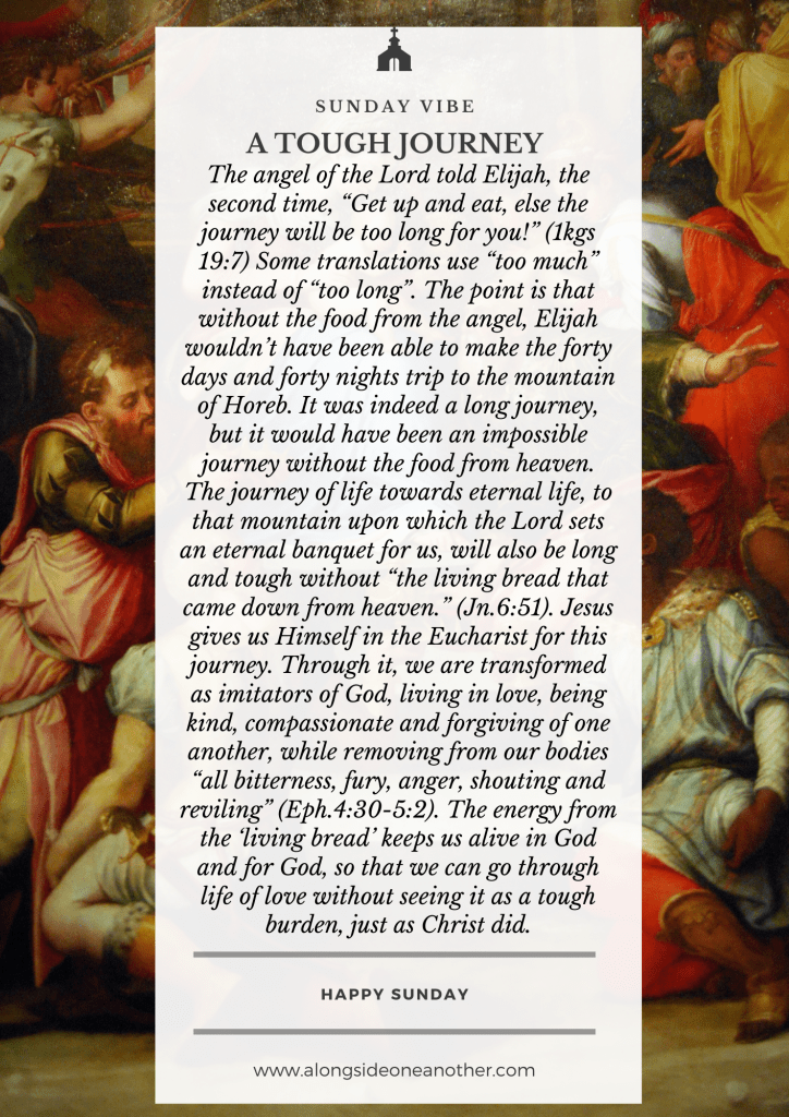 he walked forty days and forty nights to the mountain of God, Horeb. 1Kgs. 19:4-8)