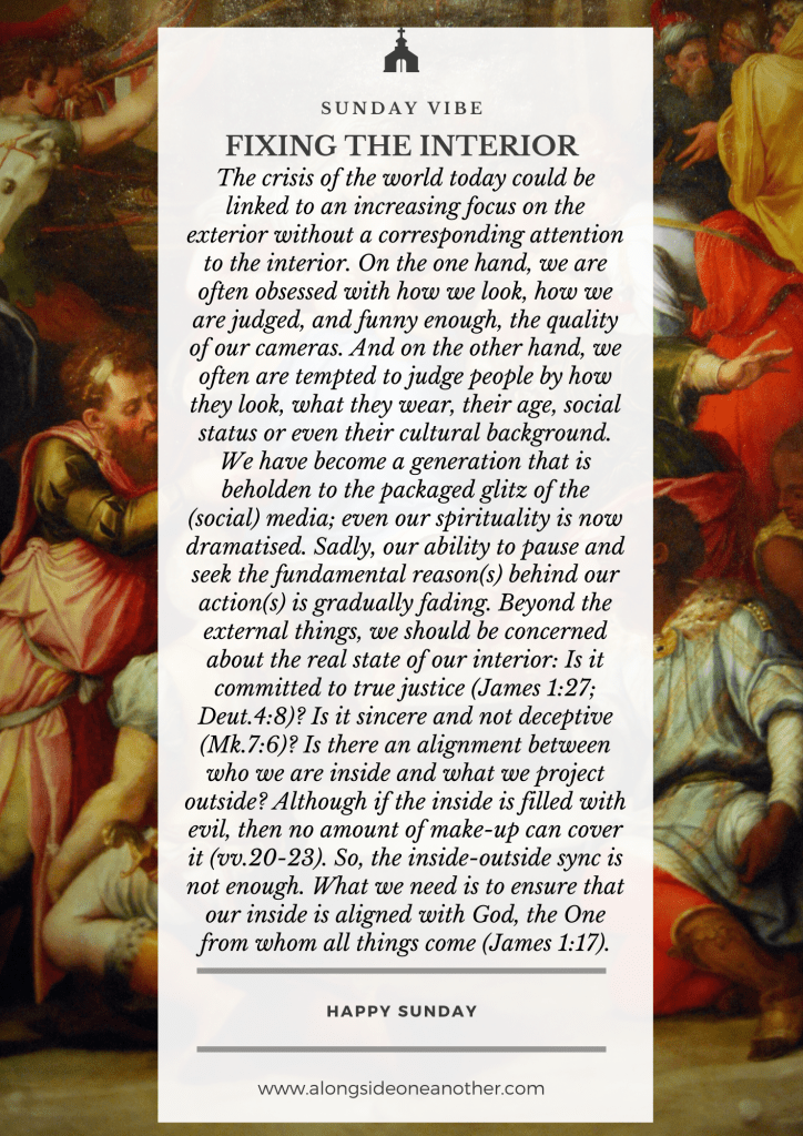 All these evils come from within and they defile.” – Mk 7:1-8, 14-15, 21-23